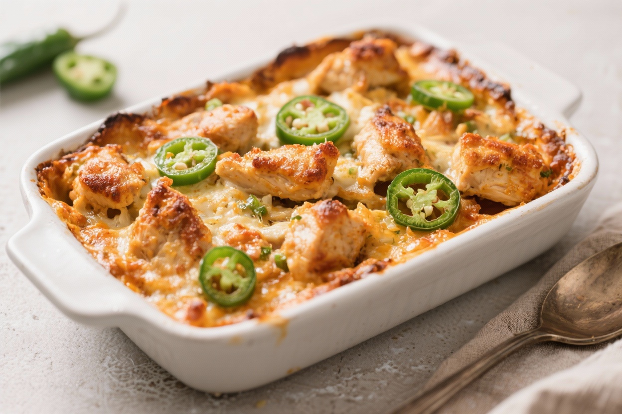 If you love jalapeno poppers and easy weeknight dinners, this casserole brings the best of both worlds. It’s creamy, rich, and just spicy enough to keep things interesting. The chicken is tender, the jalapenos add a pleasant kick, and a crispy topping ties it all together.