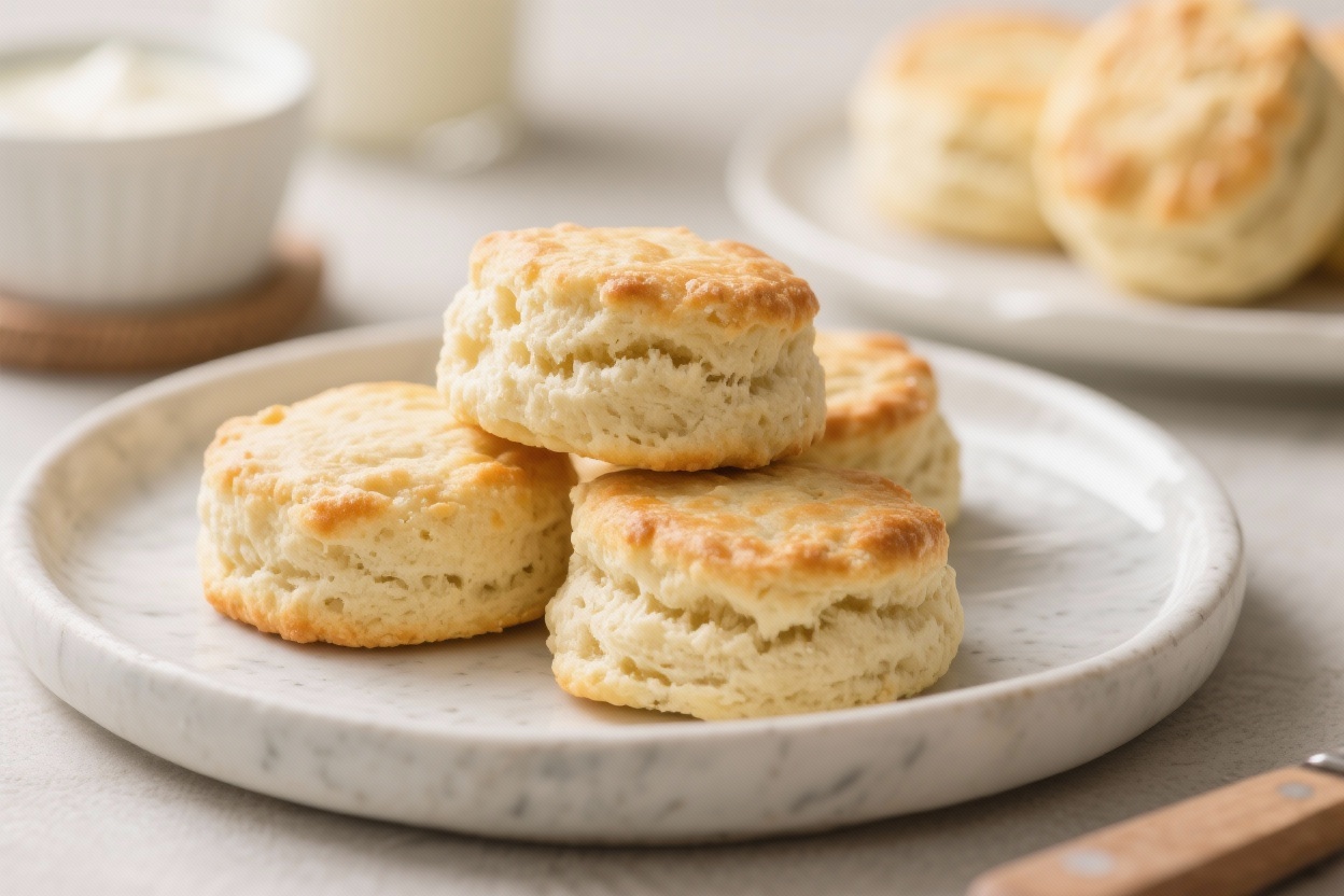- Don’t skip the acid: The lemon juice or vinegar helps the biscuits rise and adds classic buttermilk tang.