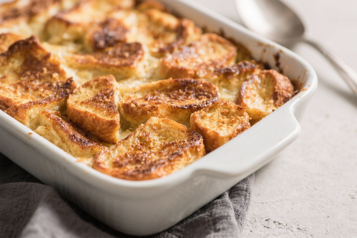 - Pumpkin Spice: Whisk 1/2 cup pumpkin puree into the custard and add 1 teaspoon pumpkin pie spice. Increase bake time by 5–10 minutes if needed.