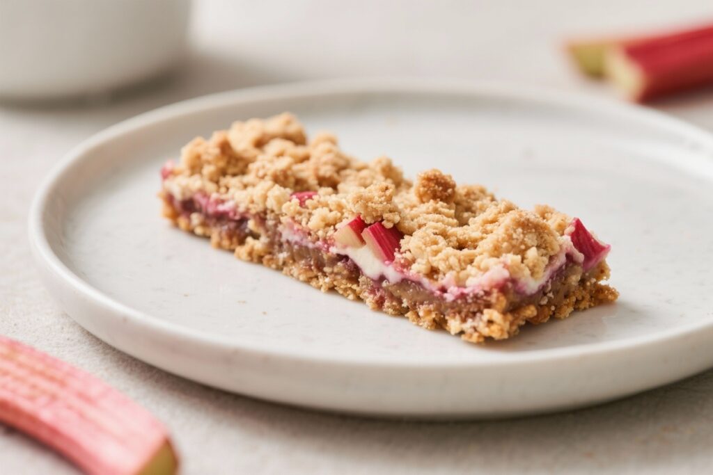 - Top and bake: Sprinkle the crumble evenly over the rhubarb. Bake 25–30 minutes, or until the topping is golden and the filling is bubbling at the edges.