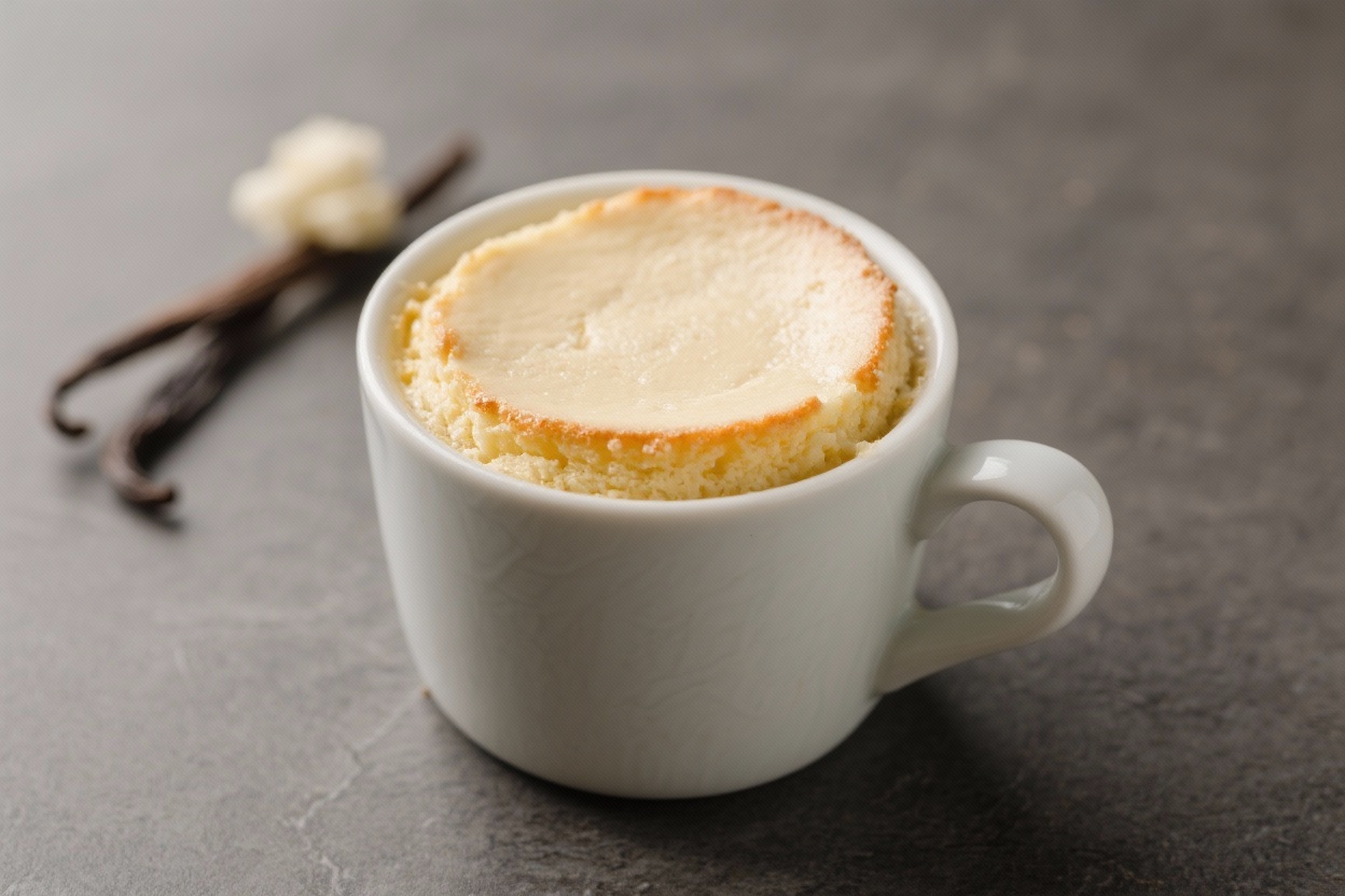 A splash of vanilla extract delivers that classic bakery flavor without added sugar. Using a granulated keto sweetener mimics real sugar’s structure, which helps the cake rise better in the microwave. Best of all, it’s portion-controlled, so you get dessert without leftovers or extra temptation.