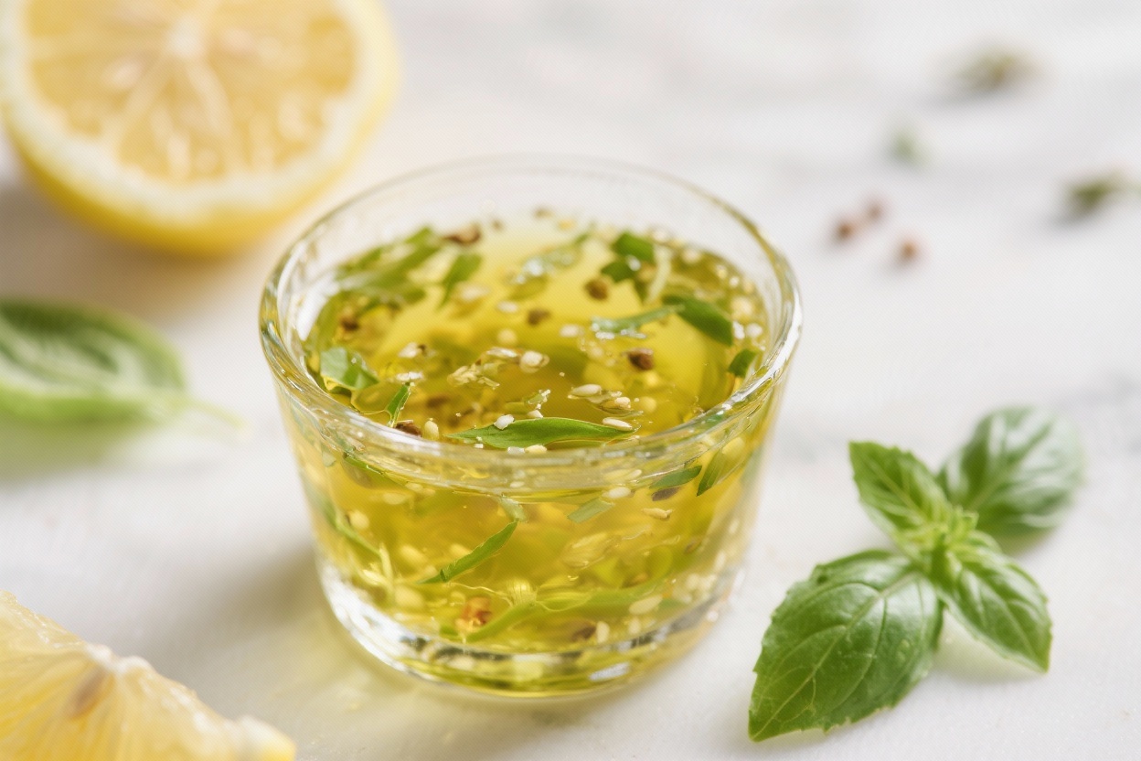 This vinaigrette leans on three key elements: fresh lemon juice, fragrant basil, and a reliable extra-virgin olive oil. The lemon gives it a crisp acidity that cuts through richer foods, while the basil adds a soft, peppery sweetness.