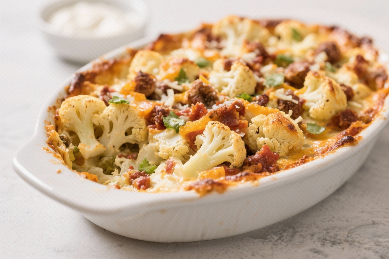Loaded Cauliflower Casserole – Cozy, Cheesy Comfort With a Lighter Twist